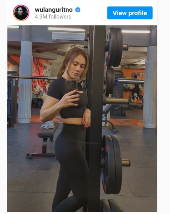 Wulan yang mengenakan setelan pakaian olahraga ketat berwarna hitam itu tampak melakukan mirror selfie. Banyak komen dari warganet.