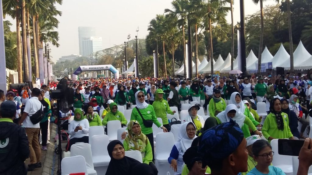 FAKTUAL-INDONESIA: Ribuan orang menghadiri kegiatan Hari Osteoporosis Nasional (HON) 2023 di Gelora Bung Karno, Jakarta, yang diadakan Perkumpulan Warga Tulang Sehat Indonesia (Perwatusi) didukung dan berkolaborasi dengan PT Sanghiang Perkasa (KALBE Nutritionals) melalui brand Entrasol, dihadiri Ketua Umum Perwatusi Anita A Hutagalung; Wakil Ketua MPR RI, Dr. Lestari Moerdijat, S.S, MM; Mantan Menteri ESDM, Prof. Purnomo Yusgiantoro; Direktur Kesehatan Usia Produktif & Lansia Kemenkes RI, dr Nida Rohmawati, MPH; Perwakilan Persatuan Osteoporosis Indonesia (Perosi), Siti Anisa Nuhoni, Sp.KFR (K) dan para pengurus DPP Perwatusi, Minggu (29/10/2023).
