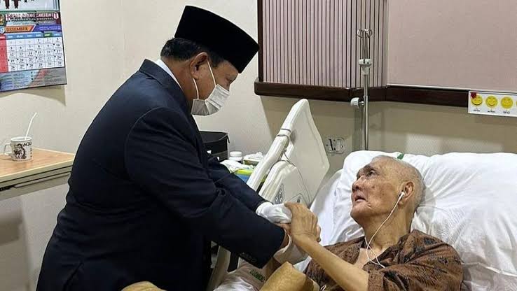 Mantan wapres Try Sutrisno saat dijenguk Menhan Prabowo Subianto. (ist)