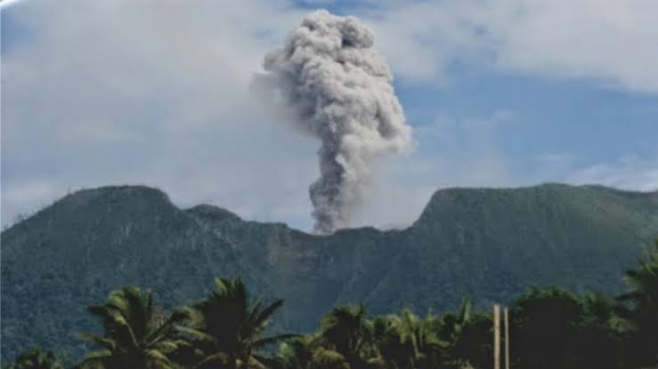 Gunung Ibu dengan ketinggian 1.325 meter di atas permukaan laut terletak di barat laut Pulau Halmahera dan berstatus Level II (Waspada).