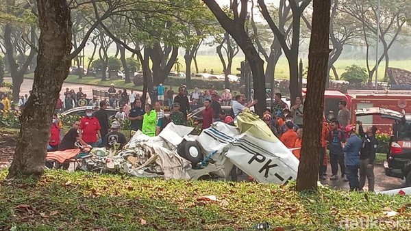 FAKTUAL-INDONESIA : Sebuah pesawat latih PK-IFP jatuh di kawasan Lapangan Sunburst, BSD City, Serpong, Tangerang Selatan, pada Minggu (19/5/2024). Pesawat hancur dan tiga awak pesawat tewas.