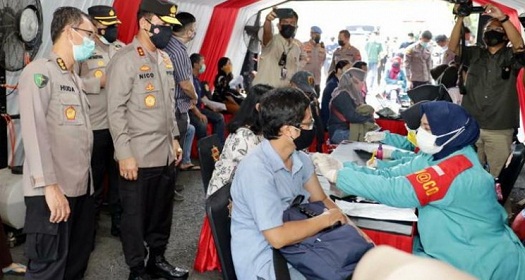 Untuk memastikan kelancarannya, Kapolda melakukan peninjauan pelaksanaan vaksinasi di Taman Bungkul, Surabaya. Orang nomor satu di jajaran kepolisian Jawa Timur itu mengamati pelaksanaan mulai dari tahap pendaftaran, screening, vaksinasi, hingga observasi dengan tetap menerapkan protokol kesehatan.