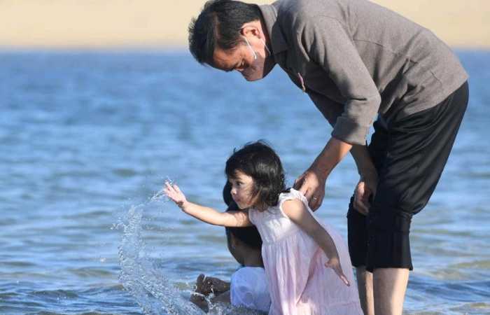 La Lembah Manah bersama sang kakek Presiden Jokowi bermain air di Pantai Nusa Dua Bali. (Foto Istimewa Lukas Biro Pers Sekretariat Presiden)