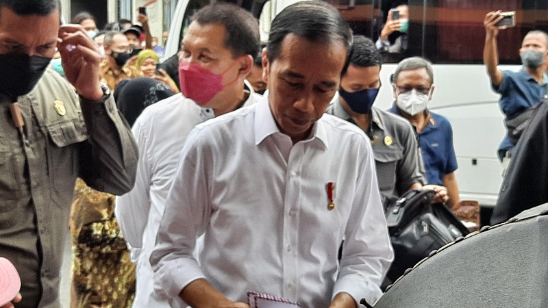 FAKTUAL-INDONESIA: Presiden Joko Widodo (Jokowi) melakukan blusukan di sejumlah lokasi di Kota Solo, Jawa Tengah, Kamis (26/5/2022) seusai menghadiri ijab kabul adiknya, Idayati di Gedung Graha Saba Niaga Solo, Jawa Tengah.