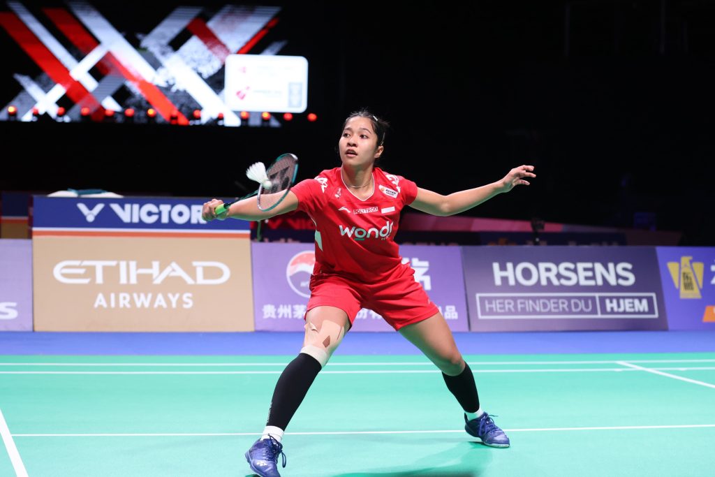 FAKTUAL-INDONESIA: Ester Nurumi Wardoyo tampil penuh perjuangan mengatasi perlawanan Huang Yu-Hsun lewat rubber game 15-21, 21-19 dan 21-12 untuk membawa Tim Uber Indonesia unggul 3-2 atas Chinese Taipei sekaligus keluar menjadi juara grup C Piala Uber 2026, Selasa (28/4/2026), di Horsens, Denmark.