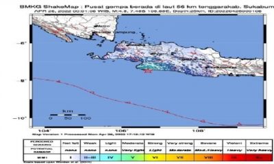 FAKTUAL-INDONESIA: Gempa Selasa, 26 April 2022, terkini terjadi di Sukabumi, Jawa Barat, pukul 00.01 WIB. Getaran gempa Selasa, 26 April 2022, itu terasa sampai di Cianjur...