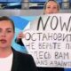 FAKTUAL-INDONESIA: Seorang wanita memegang tanda anti-perang berlari ke set program berita malam Rusia di Channel 1 yang dikendalikan negara pada Senin malam. Wanita yang berdiri di...